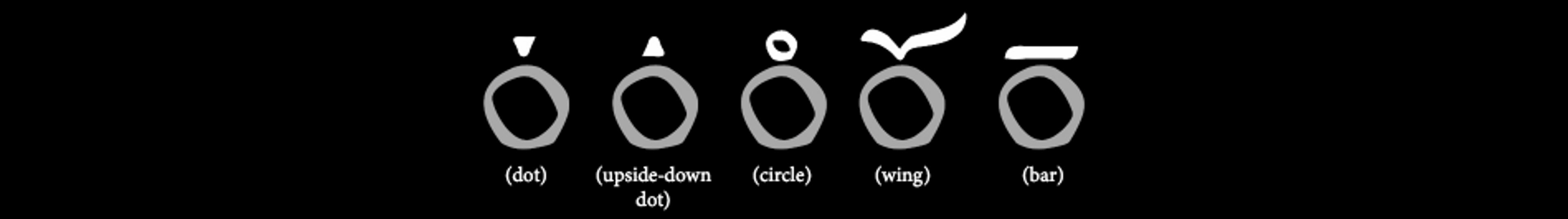 There are also a limited number of diacritics that can be placed on the glyphs. These diacritics can vary in meaning, and may also just hold an aesthetic purpose.